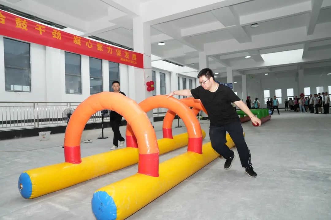 在教練帶領大家進行充分熱身之后,團建活動正式拉開序幕,6支團隊分別起了各具特色的隊名與振奮人心的口號,在“超級障礙賽”、“飛盤嘉年華”與“蒙眼博弈”等前三個競技游戲中,隊友奮力拼搏、相互團結協作,用耐心和智慧出色完成每個項目,對手之前本著“友誼第一、比賽第二”的體育精神,相互尊重,在充滿挑戰性和趣味性的活動中賽出了風格,賽出了水平。在最后一個“動力圈”游戲項目中所有人團結協作、配合默契,勇于挑戰的精神風貌充分展現了湘能楚天大家庭團結向上、銳意進取的昂揚斗志。整個活動現場氣氛活躍而又熱烈,每個人在揮灑汗水的同時,也享受了趣味運動帶來的樂趣,提升團隊的凝聚力和集體向心力的同時營造了溫馨、愉悅的企業文化氛圍,進而增強了員工對企業的歸屬感。我們在一起,就會了不起。<<<向左滑動欣賞更多精彩瞬間...