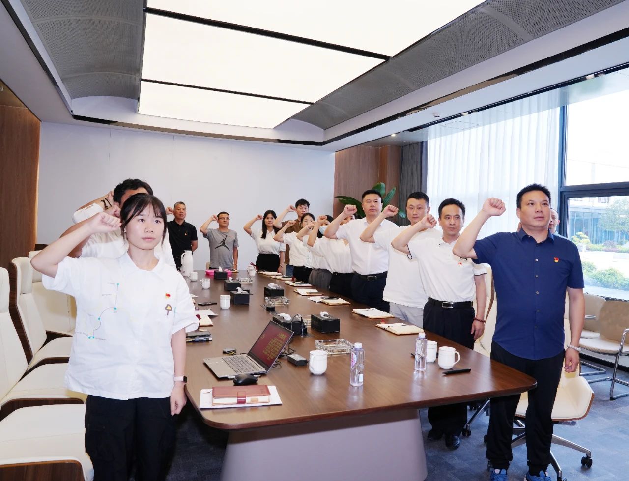 7月3日下午,未出差的集團黨支部黨員與入黨積極分子共二十余名在三樓會議室舉行了紀念建黨103周年主題黨日活動。黨員大會由支部副書記王麗杰主持,會上,支部書記陳偉其為大家上了一堂無比生動,富有思想性、理論性,又非常接地氣、振奮人心的黨課,使大家產生了強烈的共鳴與思考。之后相繼完成了黨紀視頻學習、討論朱雷同志轉為正式黨員以及接收陸振宇同志為預備黨員等會議議程。最后,黨支部書記、董事長陳偉其領誓,新黨員進行了入黨宣誓,老黨員重溫了入黨誓詞。