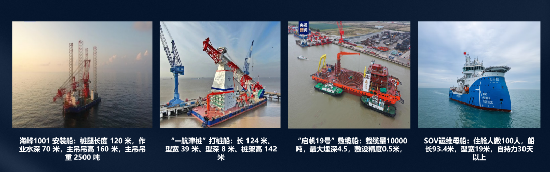 同時,相對于2021年海上風(fēng)電施工平臺短缺的狀態(tài),近兩年我國海上風(fēng)電施工能力有了較大幅度提升,《2023年中國風(fēng)電行業(yè)深度報告》統(tǒng)計,截止2023年底,國內(nèi)共有有海上風(fēng)電施工船舶74艘,其中64艘已經(jīng)投入運(yùn)營,10艘施工船還處于建設(shè)階段。另外,隨著海上風(fēng)電大型化、深遠(yuǎn)海發(fā)展進(jìn)程加快,大兆瓦的海上風(fēng)電施工平臺也加速下水交付。